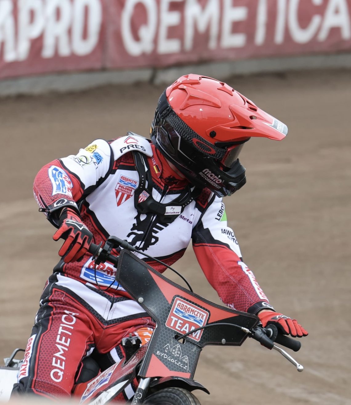 Mit dem Überholmanöver in der ersten Kurve schob Kai sich an den für Krosno startenden Pollestad vorbei, beendet den Lauf an zweiter Stelle inklusive Bonuspunkt, denn gemeinsam mit seinem Teamkollegen Szymon Wozniak gab es hier mit dem 5 : 1 den perfekten Rennstart für Bydgoszcz. Es folgte Lauf fünf – ein Lauf ohne große Geschehnisse in dem Kai von Anfang bis Ende an Position drei lag und er somit einen weiteren Zähler mitnahm. Von der blauen Startbahn ging es in den dritten Einsatz und zusammen mit Krzysztof Buczkowski, der sich direkt in Führung setzte übernahmen sie die vorderen Plätze zum erneuten 5 : 1. Zu Kais zweiten Platz kam hier außerdem Bonuspunkt Nummer zwei hinzu. Zu einem etwas holprigem Beginn kam es dann in Lauf dreizehn. Dieser wurde aufgrund eines “unsauberen” Startes von Lokteav zunächst abgebrochen, da dieser bereits eine Verwarnung hatte erfolgte der Ausschluss. Im Re-Start setzte Kai sich sofort gegen die beiden Krosno-Starter durch, übernahm die Führung und holte weitere drei Punkte (mit 69,44 sek. die schnellste Laufzeit).