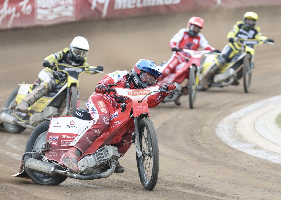 Für Kai startete das Rennen in Lauf Nummer 3 und zunächst an zweiter Position, doch Teamkollege Krzysztof Buczkowski übernahm diese und Kai begann somit mit einem Punkt plus entsprechendem Bonuspunkt. Weiter ging es von Bahn “weiß”, er kam als zweiter, zwischen den beiden Poznan-Startern aus der ersten Kurve, dicht am Hinterrad vom vor ihm fahrenden Ryan Douglas. Genau diesen setzte er immer wieder unter Druck und versuchte mehrfach zu attackieren, doch Douglas blieb standhaft und Kai erfährt zwei weitere Zähler. An den Airfence entlang fuhr Kai in seinem nächsten Einsatz direkt an die Spitze und somit zu seinem ersten Laufsieg! Gemeinsam mit seinem Teamkollegen erfuhren sie  das 5 : 1 und Bydgoszcz lag bei einem Zwischenstand von 38 : 22.