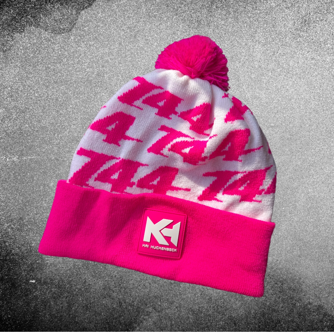 Strickmütze mit pink/weißem KH Gummi-Patch vorne
